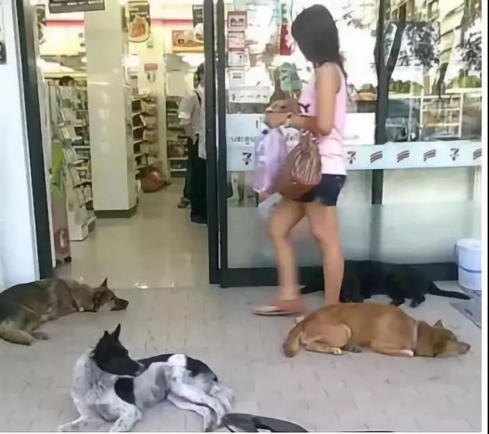 地處熱帶的泰國常年氣候炎熱,在那經(jīng)??梢钥吹竭@樣的畫面:流浪動(dòng)物們橫七豎八地躺在超市門口,享受著店內(nèi)的空氣,一點(diǎn)也不怕人。