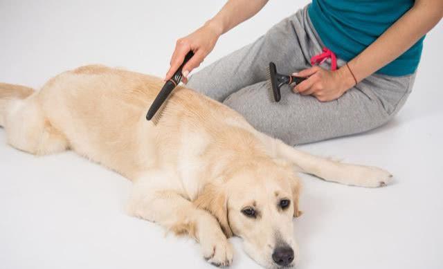(1)用金屬梳梳理一遍全身的被毛,梳去纏結,并用釘刷輕輕刷平亂毛。梳理時不要用力過猛,避免拉下毛發(fā),把狗狗弄疼。